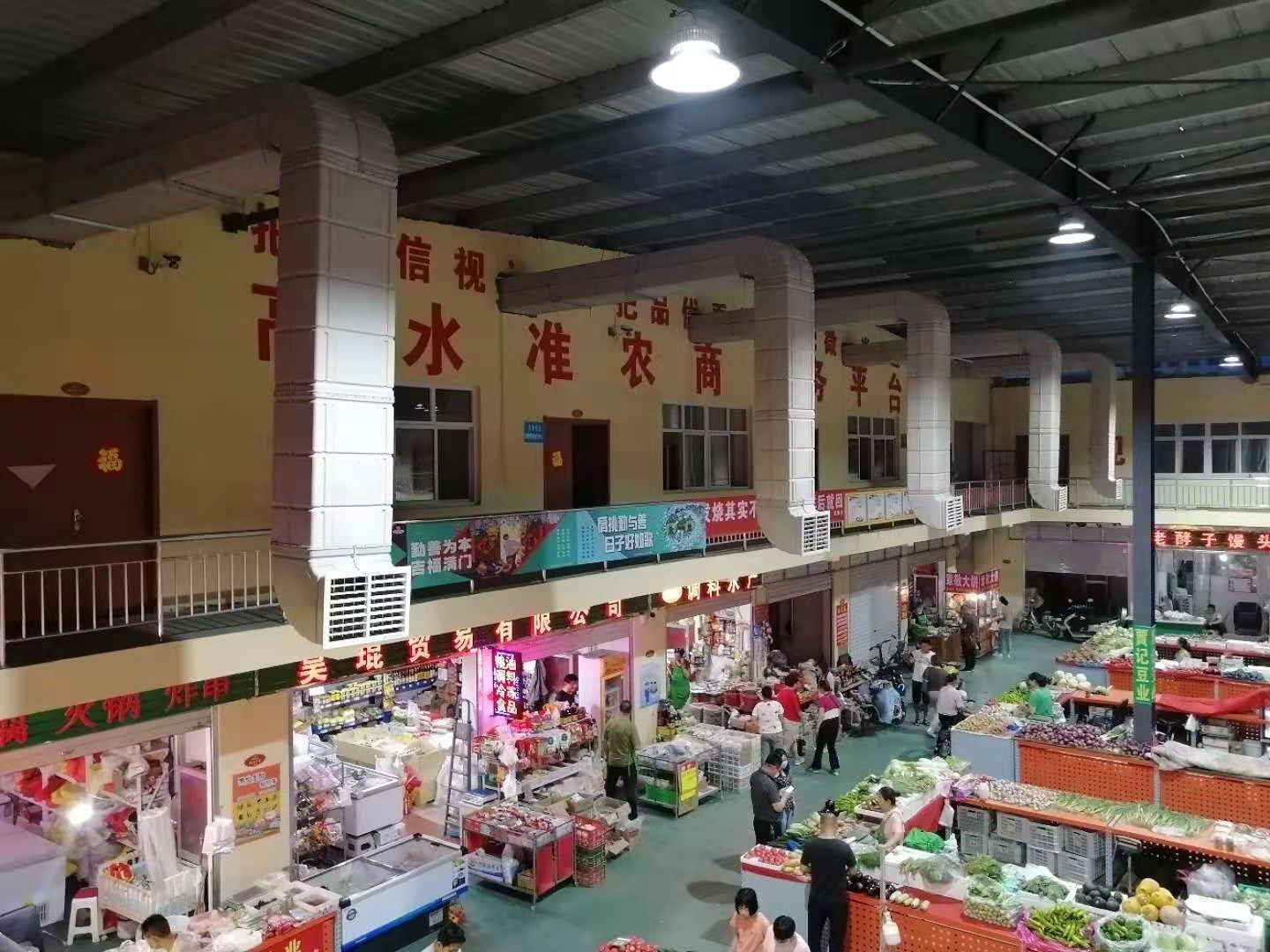 邯鄲宜萬家便民市場 是邯鄲市政府 為老板姓解決買菜,糧油,副食品的大型農(nóng)貿(mào)市場,市場四周是采用磚混結(jié)構(gòu),房頂是彩鋼瓦,夏天比較悶熱,為了改善市場環(huán)境,把用空調(diào)初期安裝費用和后期運行費用太高,商戶接受不了,經(jīng)我公司設(shè)計,采用夏瑞冷風(fēng)機(jī)12臺,安裝在房頂,用管道把新鮮涼爽的空氣送到市場,從而解決了悶熱的環(huán)境,從初期安裝到后期適用費用都達(dá)到商戶可以接受。