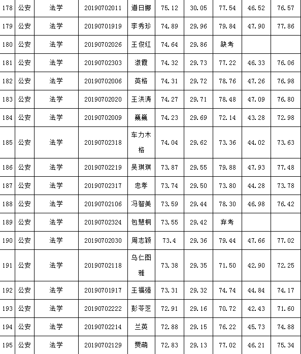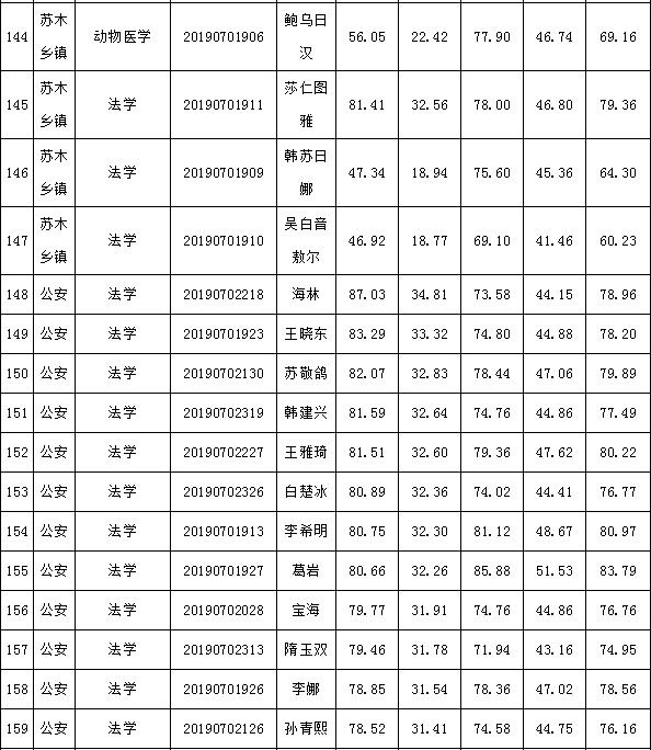 2019年庫(kù)倫旗公開(kāi)引進(jìn)專業(yè)技術(shù)人才進(jìn)入面試人員總成績(jī)公告如下: