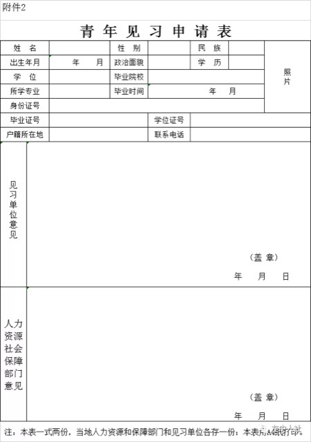 1.《青年見(jiàn)習(xí)申請(qǐng)表》(附件2),一式兩份;