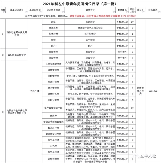 附件1:2021年科左中旗青年見(jiàn)習(xí)崗位目錄(第一批)