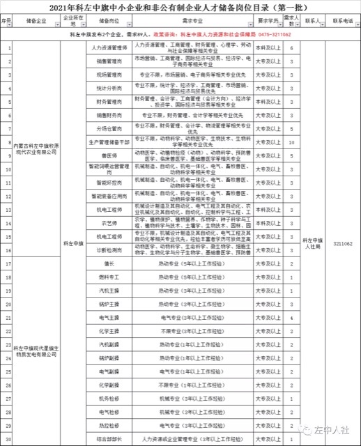 附件1:2021年科左中旗中小企業(yè)和非公有制企業(yè)人才儲備崗位目錄(第一批)