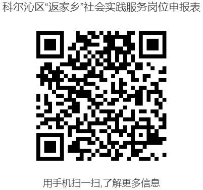 方式一:各單位可結(jié)合實際情況和工作需要確定實踐崗位,填寫《科爾沁區(qū)“返家鄉(xiāng)”社會實踐服務(wù)崗位申報表》(掃描下方二維碼下載)