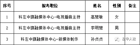 根據(jù)《科左中旗公開招聘融媒體專業(yè)技術(shù)崗位人員簡(jiǎn)章》要求,經(jīng)過報(bào)名、資格初審、專業(yè)測(cè)試、體檢、資格復(fù)審及考察等環(huán)節(jié),現(xiàn)對(duì)擬聘用人員高慧敏等3人予以公示。公示時(shí)間2022年2月14日至2月20日。公示期間對(duì)公示情況有異議,請(qǐng)反映者署名,實(shí)事求是反映問題并提供必要的調(diào)查線索及相關(guān)證明材料。