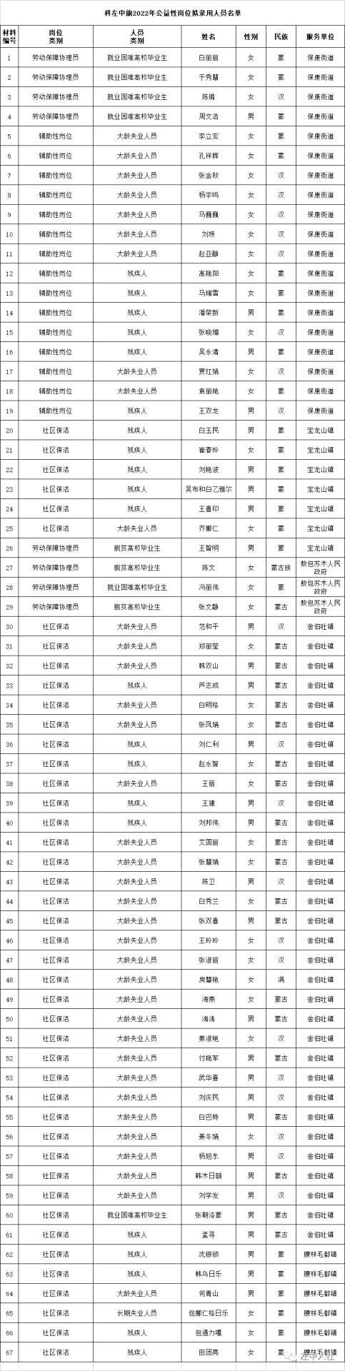 附件:科左中旗2022年公益性崗位擬錄用人員名單