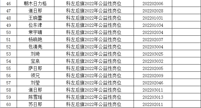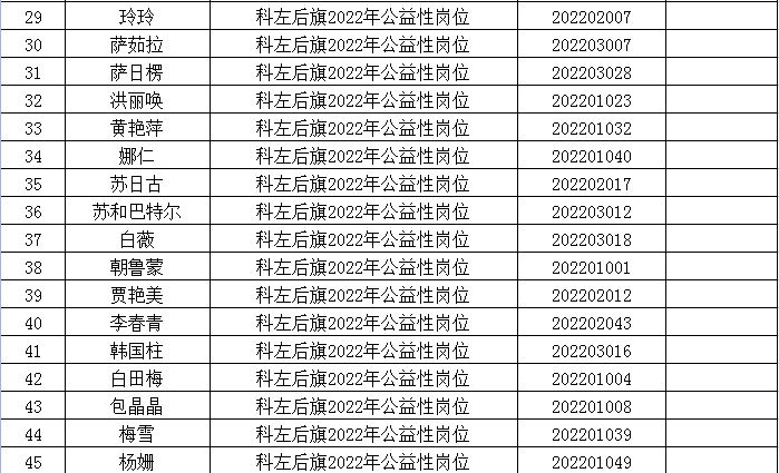 附件:科左后旗2022年公益性崗位擬聘用人員名單