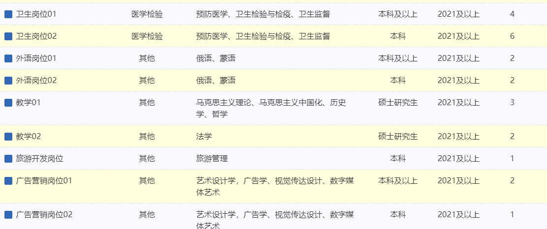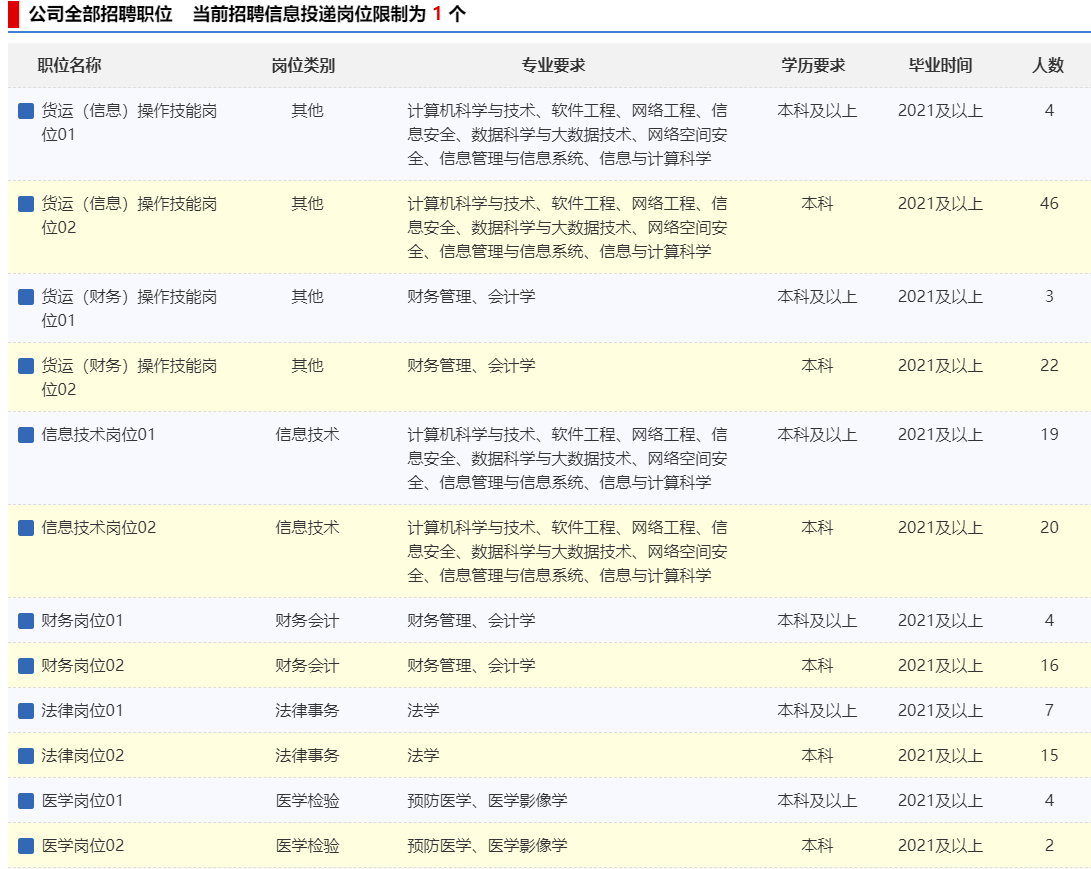 本次計劃招聘專業(yè)、崗位、人數(shù)和工作地點等內(nèi)容詳見附件點擊獲取職位表。