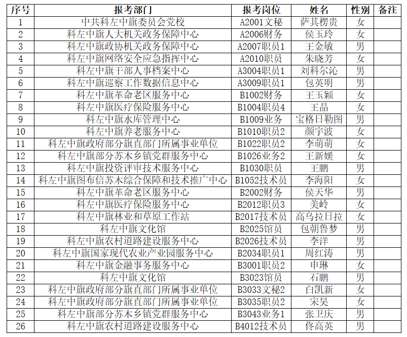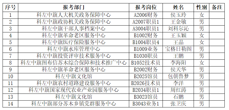 根據(jù)《科左中旗2021年度事業(yè)單位公開招聘工作人員簡(jiǎn)章》要求,經(jīng)研究決定對(duì)科左中旗2021年度事業(yè)單位公開招聘考察環(huán)節(jié)中擬遞補(bǔ)人員進(jìn)行體檢,現(xiàn)就體檢及考察有關(guān)事宜公告如下: