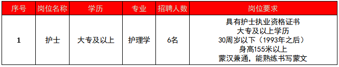 扎魯特旗蒙醫(yī)醫(yī)院招聘編外護(hù)理專(zhuān)業(yè)技術(shù)工作人員崗位信息表