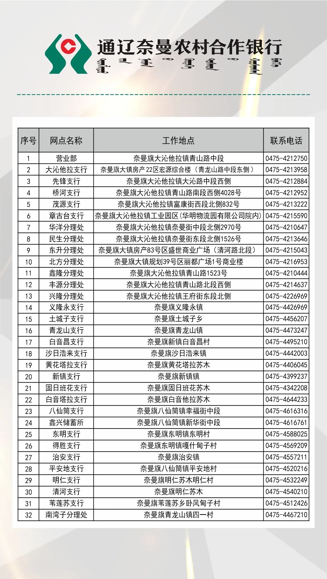 通遼奈曼農村合作銀行(簡稱“奈曼農合行”),營業(yè)網(wǎng)點遍布全旗14個蘇木鄉(xiāng)鎮(zhèn),存貸款規(guī)模均居全旗金融機構首位,是全旗支農支小力度最大、營業(yè)網(wǎng)點與從業(yè)人員最多、金融服務網(wǎng)絡覆蓋最廣的地方金融機構。