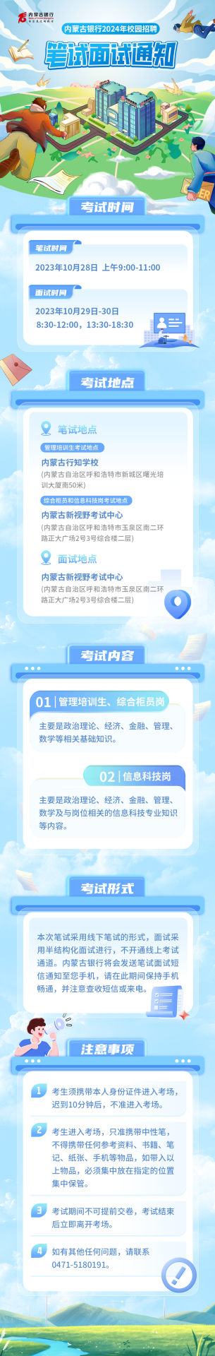 筆試面試通知 | 內(nèi)蒙古銀行2024年校園招聘