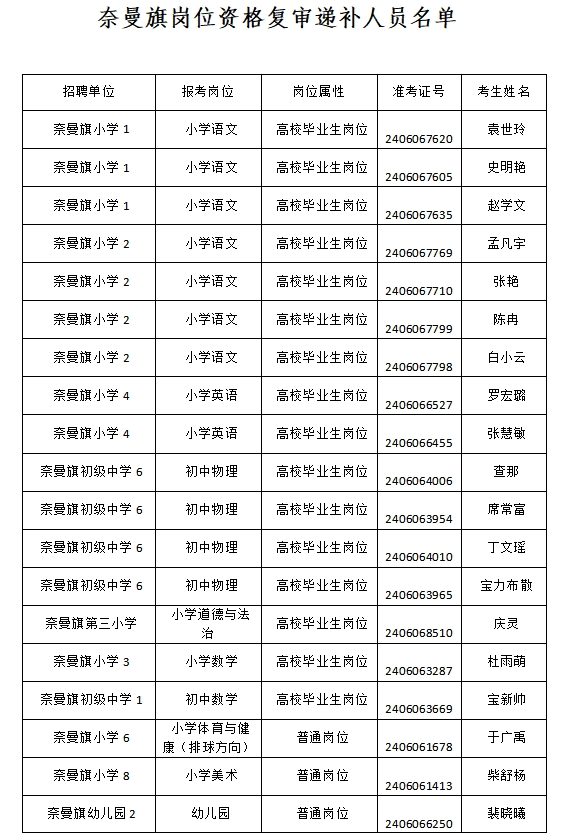 【復(fù)審時(shí)間:3月21日】關(guān)于2024年度通遼市教育系統(tǒng)公開招聘工作人員奈曼旗崗位資格復(fù)審遞補(bǔ)人員的通知