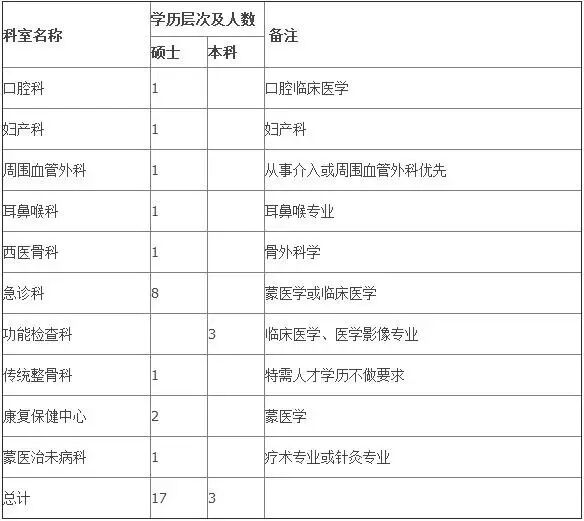 根據(jù)學(xué)校年度進(jìn)人計(jì)劃,內(nèi)蒙古民族大學(xué)附屬醫(yī)院擬招聘急需緊缺人才20名,詳見附件《崗位需求表》。